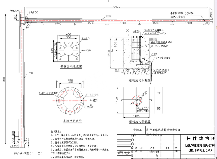 立杆直缝采用自动埋弧焊焊接,法兰及其它结构部分采用气体保护焊焊接