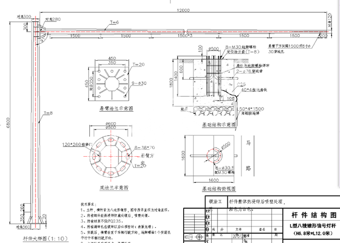 立杆直缝采用自动埋弧焊焊接,法兰及其它结构部分采用气体保护焊焊接