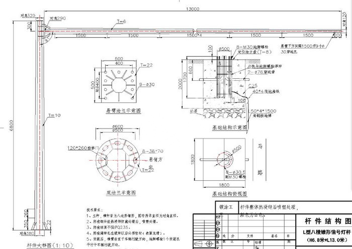立杆直缝采用自动埋弧焊焊接,法兰及其它结构部分采用气体保护焊焊接